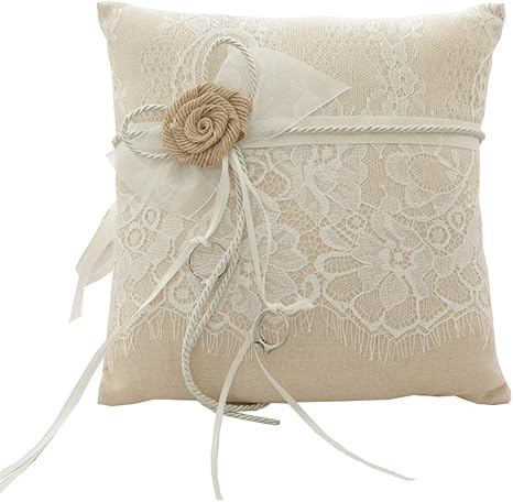 Vclife Ringkissen Hochzeit Vintage Ivory Braun Blumen Spitze Tull Braut Brautigam Ringe Dekoartikel Ehering Kissen 21 X 21cm Amazon De Kuche Haushalt